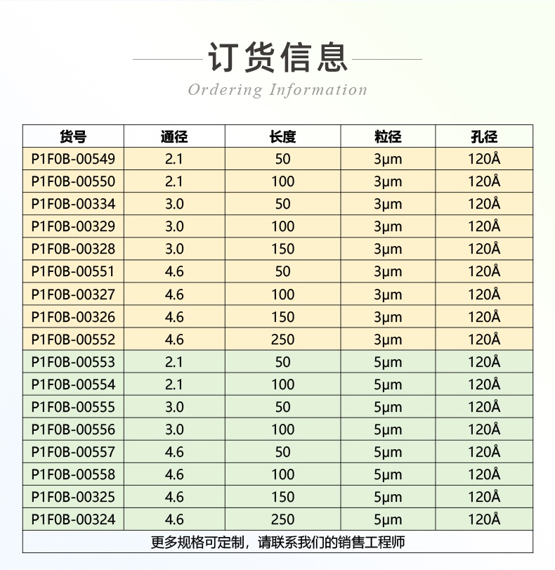 1.8μm、 5μm、3μm 120? PFP五氟苯基柱
